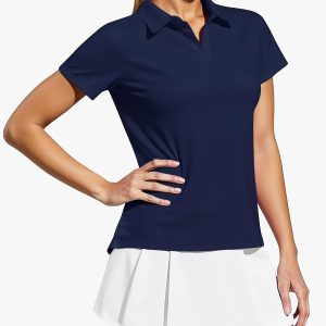 Women’s V Neck Golf Polo Shirts UPF 50+ Short Sleeve Tennis Shirt Collared Workout Tops Quick Dry