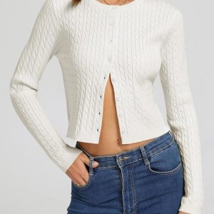 Women’s Cropped Cable Knit Cardigan Short 2026 Fall Long Sleeve Lightweight Button Up Sweater