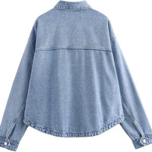 Women d Jean Jacket Casual Button Up Denim Overshirt Trendy Long Sleeve Denim Jacket Coat