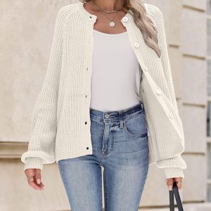 2026 Cardigan Sweaters for Women Long Sleeve Chunky Knit Cardigan Crew Neck Button Down Fall Fashion Clothes