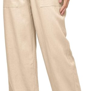 Women Linen Pants Wide Leg Casual Palazzo Pants Cotton Linen Lounge Beach Summer Pants with Pockets 29″/31″/ 33″
