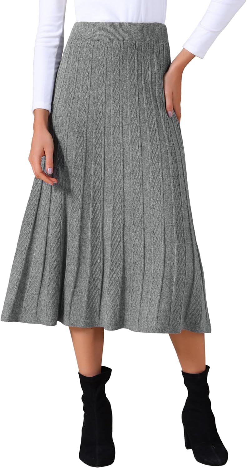 - Side Zipper, High Waist, Aline, Knit, Unlined, No Pockets and Solid Color
